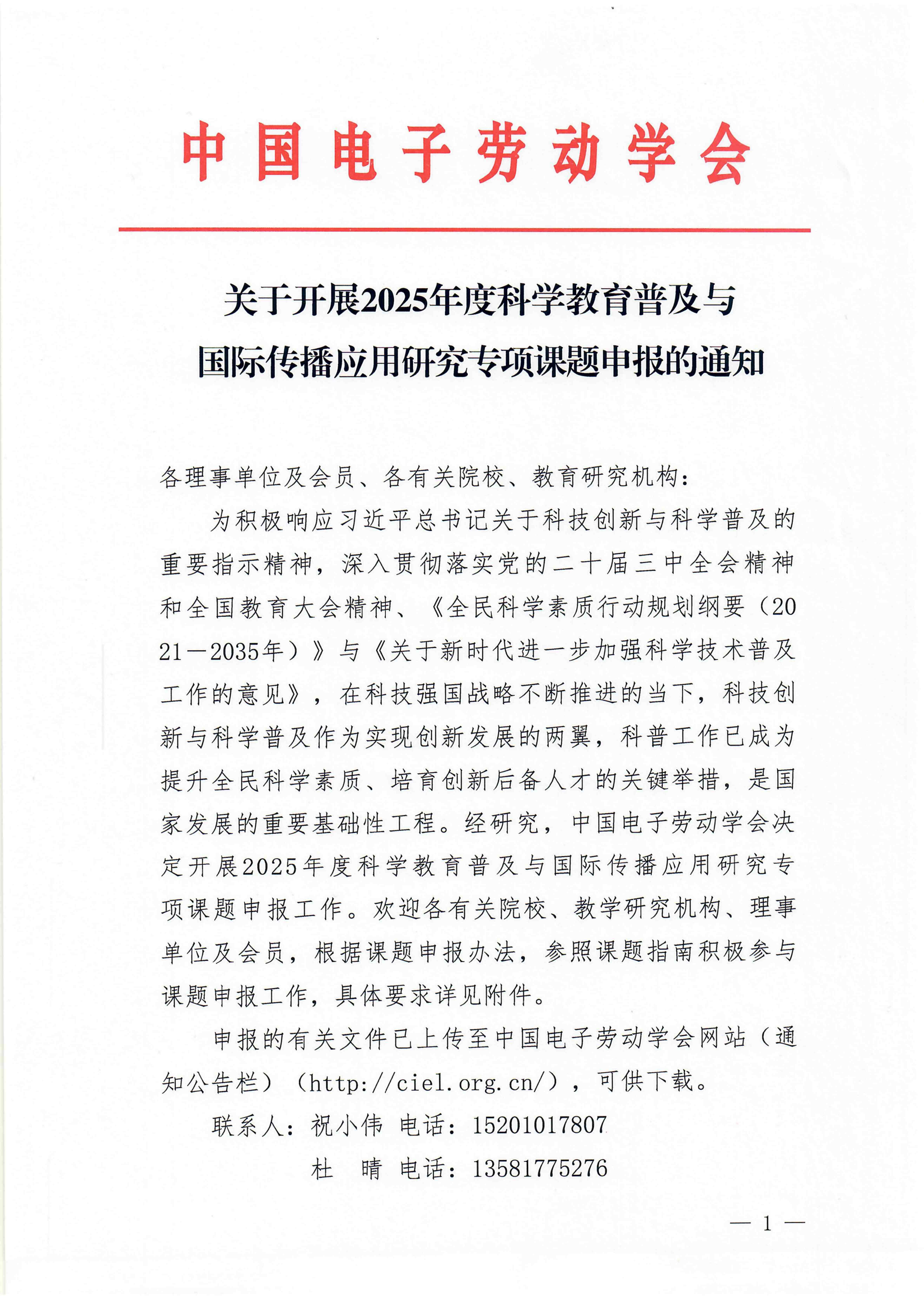 关于开展2025年度科学教育普及与国际传播应用研究专项课题申报的通知